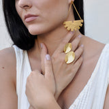 The Double Phyllo statement ring is a By Aris staple with timeless flair. The Phyllo shapes has hammered detail done by hand. Tailor it to the style that suits you by adjusting the Phyllo to your style.