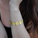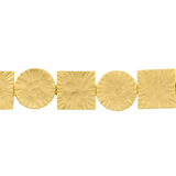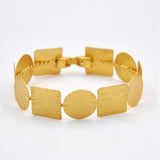 The geometric link bracelet combines hand-cut square and circle shapes. The hammered detail embellishes this abstract bracelet, making it the perfect accessory for any outfit, casual or formal.