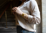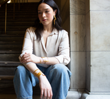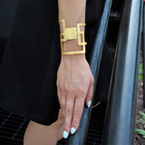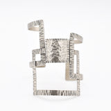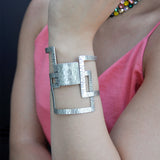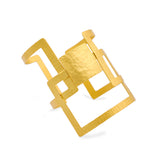 Aris's inspiration behind the Minoan Cuff travels back to the myth of the Minotaur and its inescapable labyrinth. Multiple rectangular panels are forged together to form a cuff that hugs your wrist seamlessly. Allow its unique design to capture you!