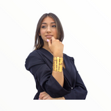 For someone who loves esoterics, geometry is in everything. The Alexandra bracelet was inspired by the shapes in geometric architecture. Each individual metal panel is hand-cut by the designer giving the cuff a unique and abstract look. A simple loud statement of our female power.