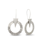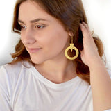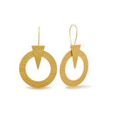 A statement piece designed for those that want to be bold. Aris handmade the Nyx earrings by forging a triangle and a large metal circle.