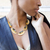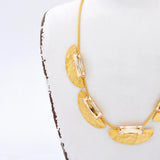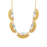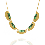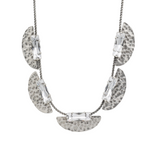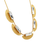 Aris made the Ophelia necklace rich in beauty. Made with stunning princess baguette fine quality crystals, and individually crafted metal oval shapes. This necklace is perfect for a cocktail party, gala, or special date. Pair it with Baguette Crystal Earrings.