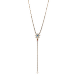 Indulge in the ultimate luxury with our Grace Necklace. This delicate Y-shaped necklace boasts a petite flower, a round flower and a marquise crystal, creating an elegant and sophisticated look. Embrace the beauty and grace of this must-have necklace. Match it with the Grace long chain earrings or just with a small diamond stud.