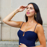 In Greek mythology, Terpsichore (Τερψιχόρη) is one of the nine Muses, and her name literally means “dance-enjoying.” She’s the spirit of harmony and flow — and this necklace brings that energy into every look.