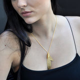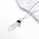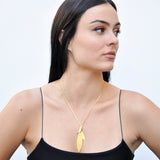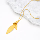 The Twisted Phyllo Necklace is a great gift for those you want to adorn. A forged leaf shape twisted in a tie-like knot.