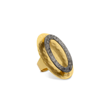 The Selene Ring feature a large flat oval bronze sheet, representing the full moon’s brilliance. At its center, an open oval shape floats above, soldered at the top and bottom edges, creating a layered effect—like the moon’s shifting phases. We’re introducing duo-tone finishesblack with gold and silver with gold—adding depth and contrast to this statement piece. Minimal yet bold, these earrings are a statement of grace and power, perfect for those who shine effortlessly, day or night.