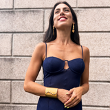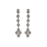 These earrings were made by linking hand-cut hexagonal shapes, each textured with a radiant, sunburst-like pattern. I wanted them to move lightly and gracefully, catching the light in different angles. The design feels geometric, yet also organic—almost like flowers or rays of light unfolding in harmony. They’re bold but airy, made to frame the face with elegance and brightness. Pair it with the Starry open ring for the perfect match.