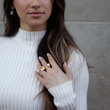 Bold, sculptural and unusual. Hand fabricated from 18K gold plated brass and Nickel free. Also available in Oxidized plated silver.