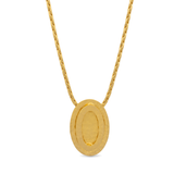 At the heart of the Selene Pendant is a bold flat oval piece, representing the moon’s surface—smooth yet full of depth. Floating above it, an open oval shape is delicately soldered at the top and bottom, giving the illusion of movement, like the shifting phases of the moon. The pendant is suspended from a thick, squared chain that sits beautifully on any neckline, making it an easy, elegant statement.