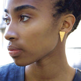 Sleek,simple and effortlessly cool-our Hand-Hammered triangles bring a modern edge to your everyday look. These minimal studs add just the right touch of shine whether you're at the office ,running errands ,or heading out for coffee. A go -to favorite for effortless style. Made with Surgical steel post