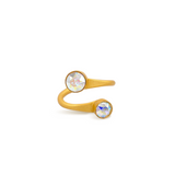 Versatility and elegance are what make the Daphne Ring so loved by By Aris wearers. A twisted metal effortlessly hugs the wearer's finger and is adorned with two fine-quality crystals.