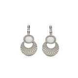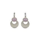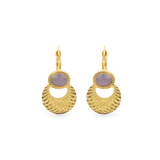 Lightweight half-moon-shaped earrings in bronze. The metal on the moon and the round crystal base are textured to create intriguing earrings that invoke the mysterious landscape of the moon. Made with a secure lever back and is easy for everyday wear. Pair it with the Open Moon Ring for a perfect match.