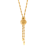 Named after the Greek god of the Sun, this necklace was inspired by Helios, who rode a golden chariot that brought the Sun across the skies each day from the East to the West. The necklace features a unique orb nest with radiating lines, evoking the bright rays of the sun. The nest orb is soldered on a curly long chain with asymmetric pointed endings. Finished with a Lobster clasp and with a two inches extension.