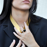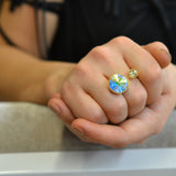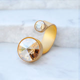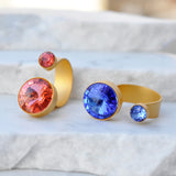 A chic and modern open silhouette ring. This fully customizable with any two fine quality crystals, this dainty crystal ring is an easy, elegant way to express your individuality.