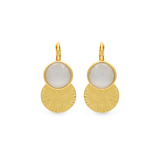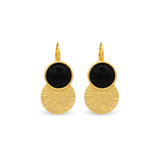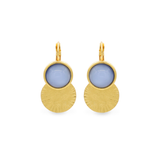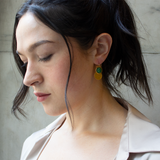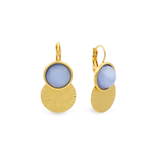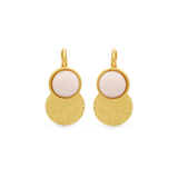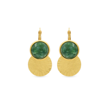 Small yet sculptural, these lightweight earrings are cast in brass, hand hammered in two different styles, and plated in 18k gold to illuminate the round design. Available in 3 Glass colors.