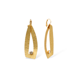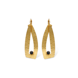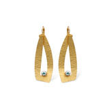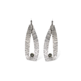 These sailboat-inspired earrings are hand-hammered in lines, folded to face each other, and frame beautifully the face. Adorned with a round crystal for maximum impact.