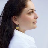 These geometric shape dangle earrings feature shiny druzy look crystals in bright colors. Casual or dressy , easy to wear Anytime!