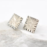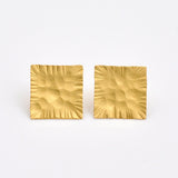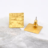 A timeless shape with a rich texture. We have hammered the square in two distinct styles. Lines around the edges for a subtle frame and a rock-style hammering at a center for depth and contrast . The result is a refined yet organic look that catches the light beautifully. Understated and versatile they're perfect for everyday wear with just enough detail to Stand out. Made with Surgical Steel post.