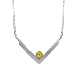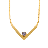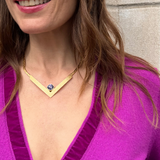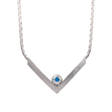 The necklace features a large V-shaped pendant suspended from a flat chain. At the center of the V, a dazzling rounded square crystal catches the light, adding a brilliant and edgy twist to the design. This versatile piece can be worn on its own for a chic and sophisticated look or layered with other simple chains for a more eclectic style. Finished with a lobster clasp and the signature By Aris rounded motif detail.